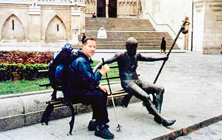 pela Internet. Depois, por volta das 15 h, segui rumo a um supermercado com o intuito de adquirir provisões. No retorno, numa rua movimentada, visualizei novamente o peregrino “gema-de-ovo”, desta vez sozinho, ainda de mochila