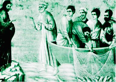 Informa também o Evangelho, que quando Jesus andava a beira do mar da Galiléia, viu dois irmãos: Simão, chamado Pedro, e seu irmão André. Estavam lançando a rede ao mar, pois eram pescadores.