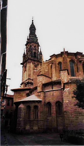 La iglesia que comparte la sede episcopal con Santo Domingo de la Calzada (de ahí lo de “concatedral”) recibió esta curiosa advocación porque el primer templo que se levantó en este solar tenía forma redondeada, muy similar